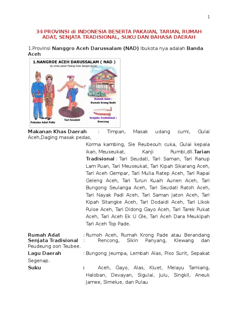 34 Provinsi Di Indonesia Beserta Pakaian Docx
