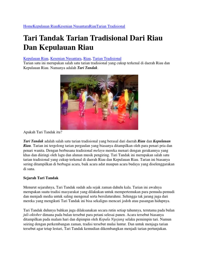 Tari Tandak Tarian Tradisional Dari Riau Dan Kepulauan Riau