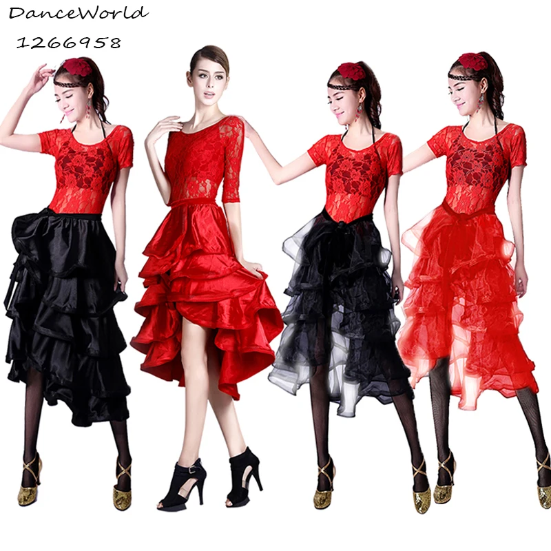 Wanita Gadis Perut Spanyol Flamenco Tari Rok Satin Maroon Hitam