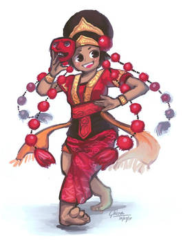 Ilustrasi Kartun Tari Tradisional Indonesia Pada Media T Shirt