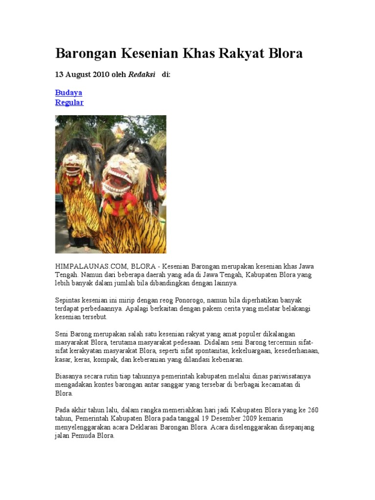 Sebutan Kota Barongan Perlu Terus Dibumikan Di Blora Infoblora Com