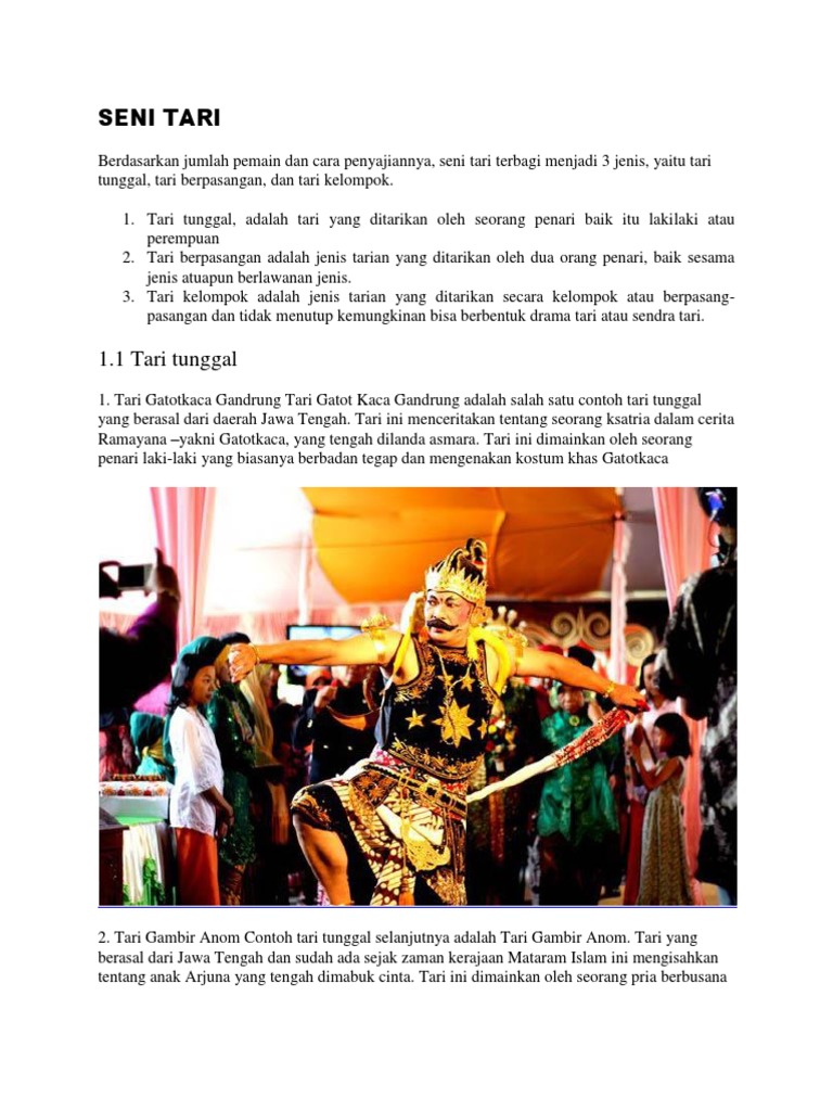 Tari Tunggal Tari Pasangan Tari Kelompok Docx